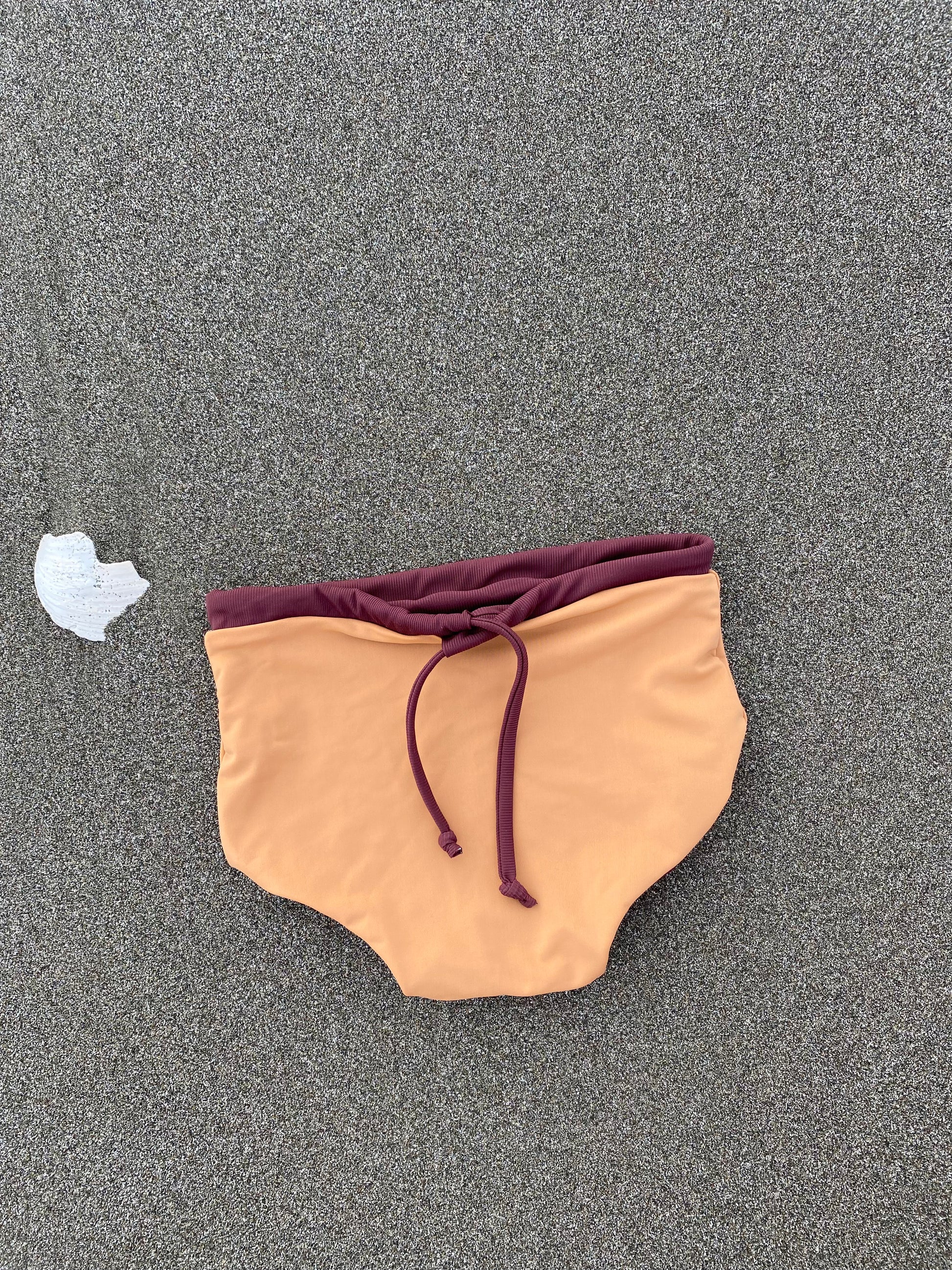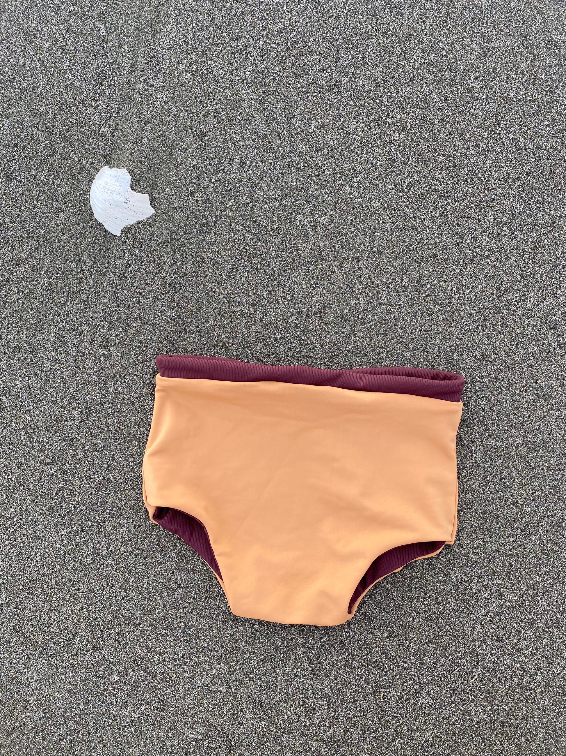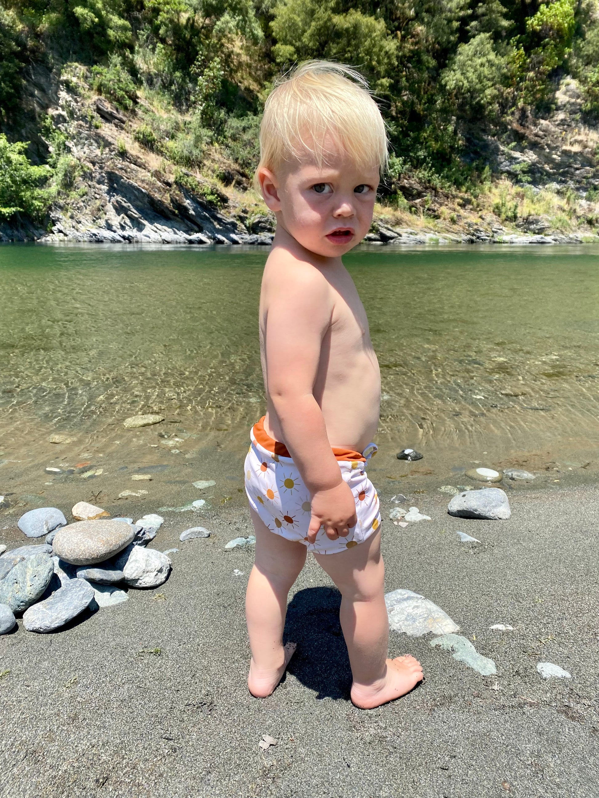 The cutest option for you to match your little at the pool or beach. This fully reversible baby swimmie has a drawstring so it can be tied tight at the waist and can be worn over a diaper.