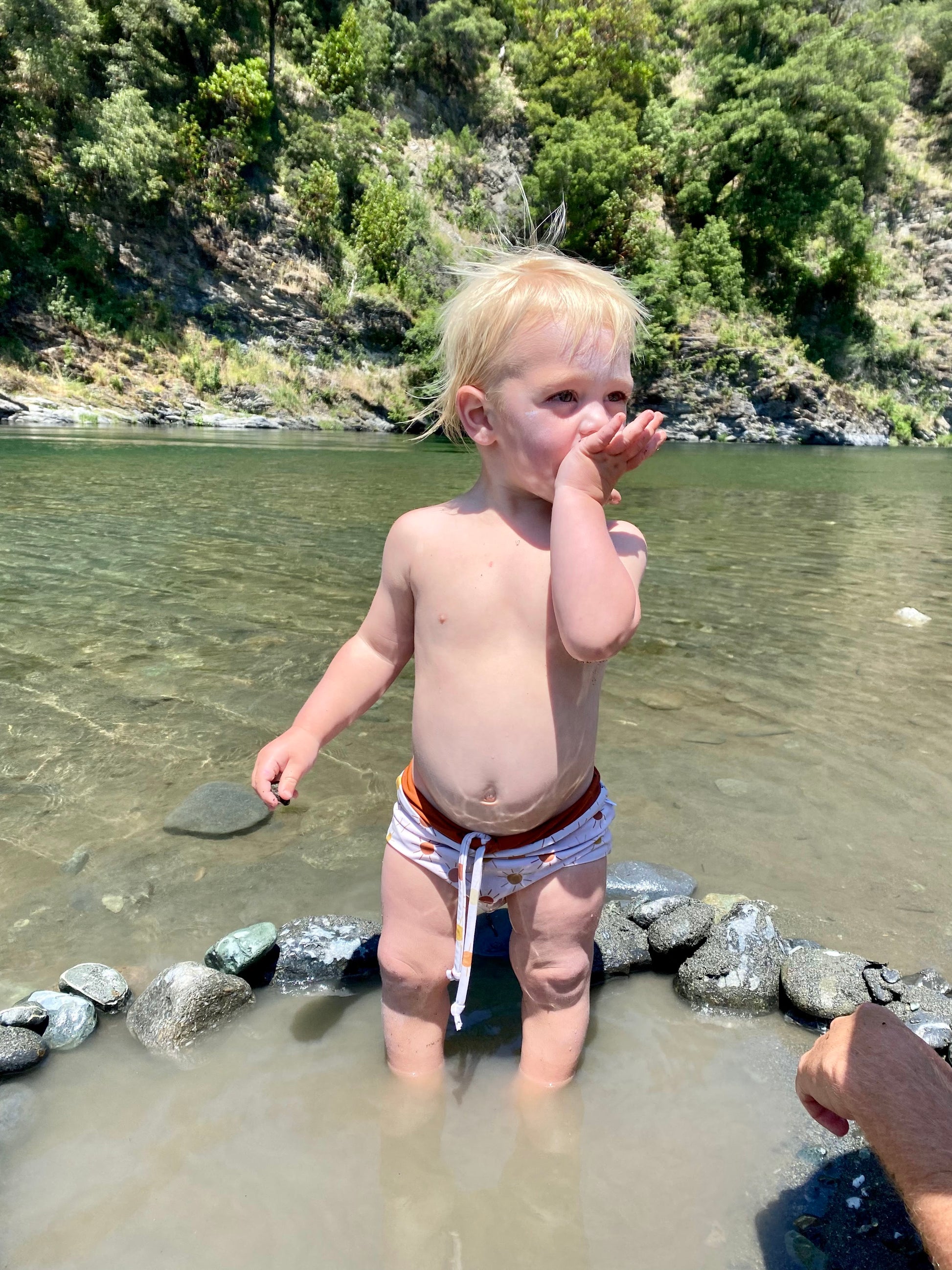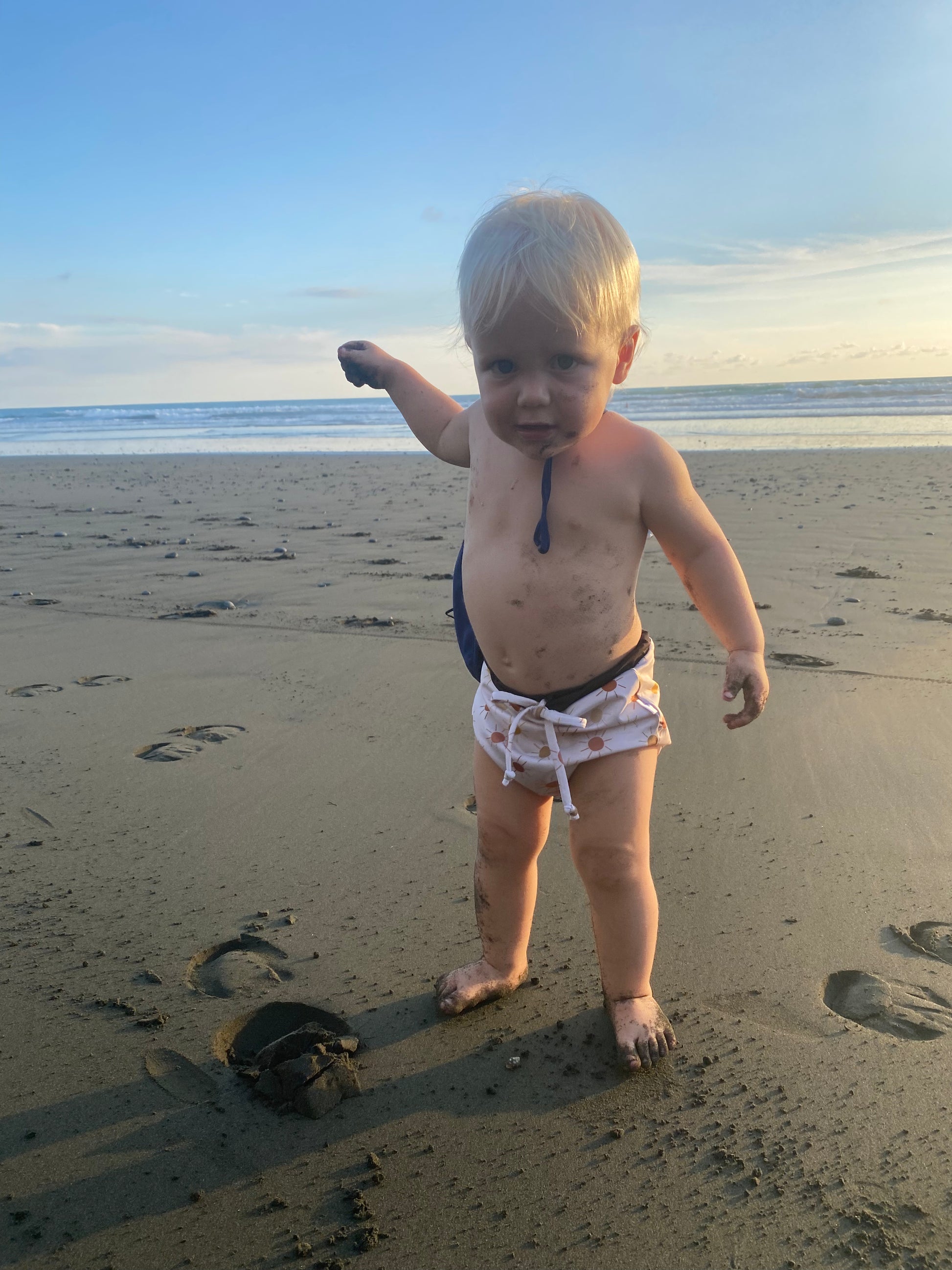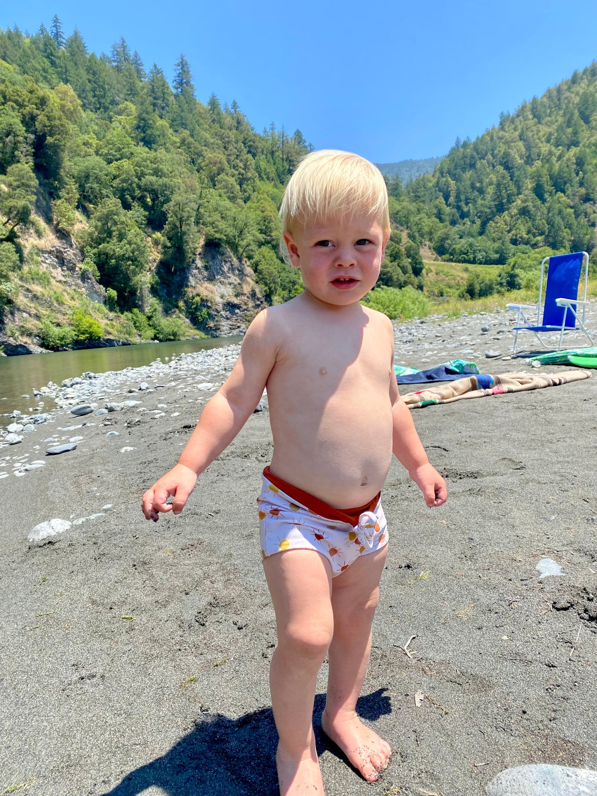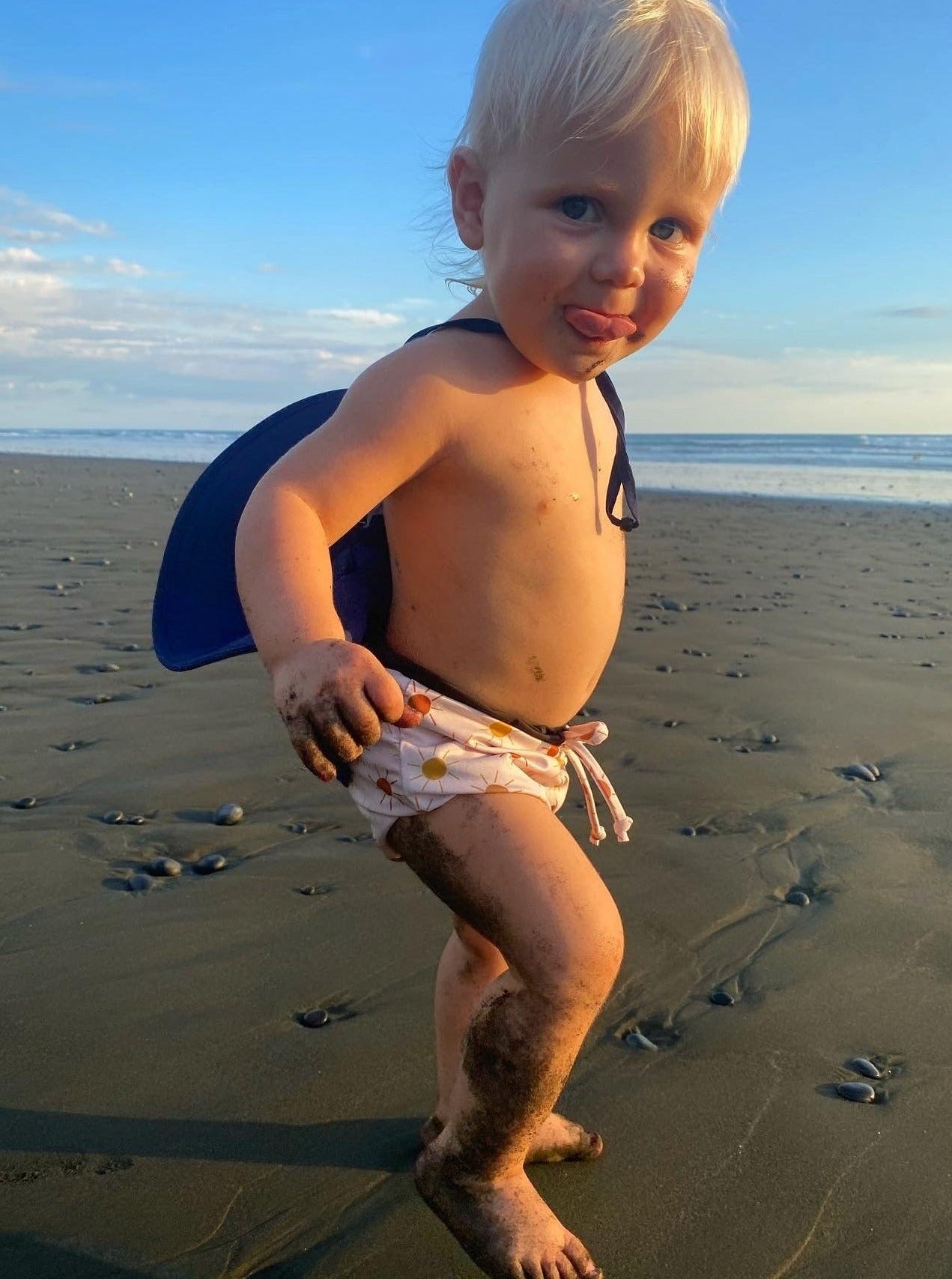 The cutest option for you to match your little at the pool or beach. This fully reversible baby swimmie has a drawstring so it can be tied tight at the waist and can be worn over a diaper.