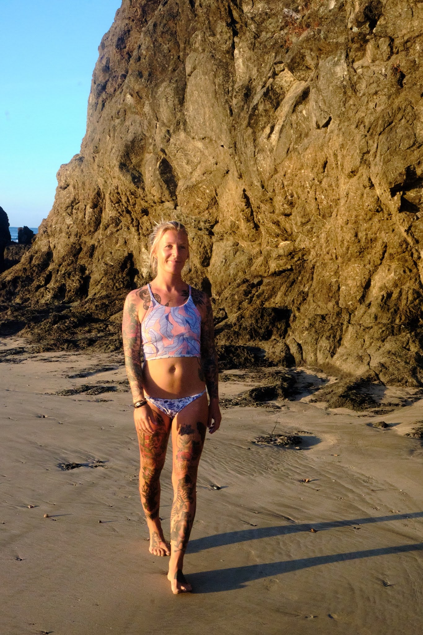Eco Fabrics are made from 100% post consumer plastics; hand wash, air dry, rinse with fresh water after use to increase longevity of garment.