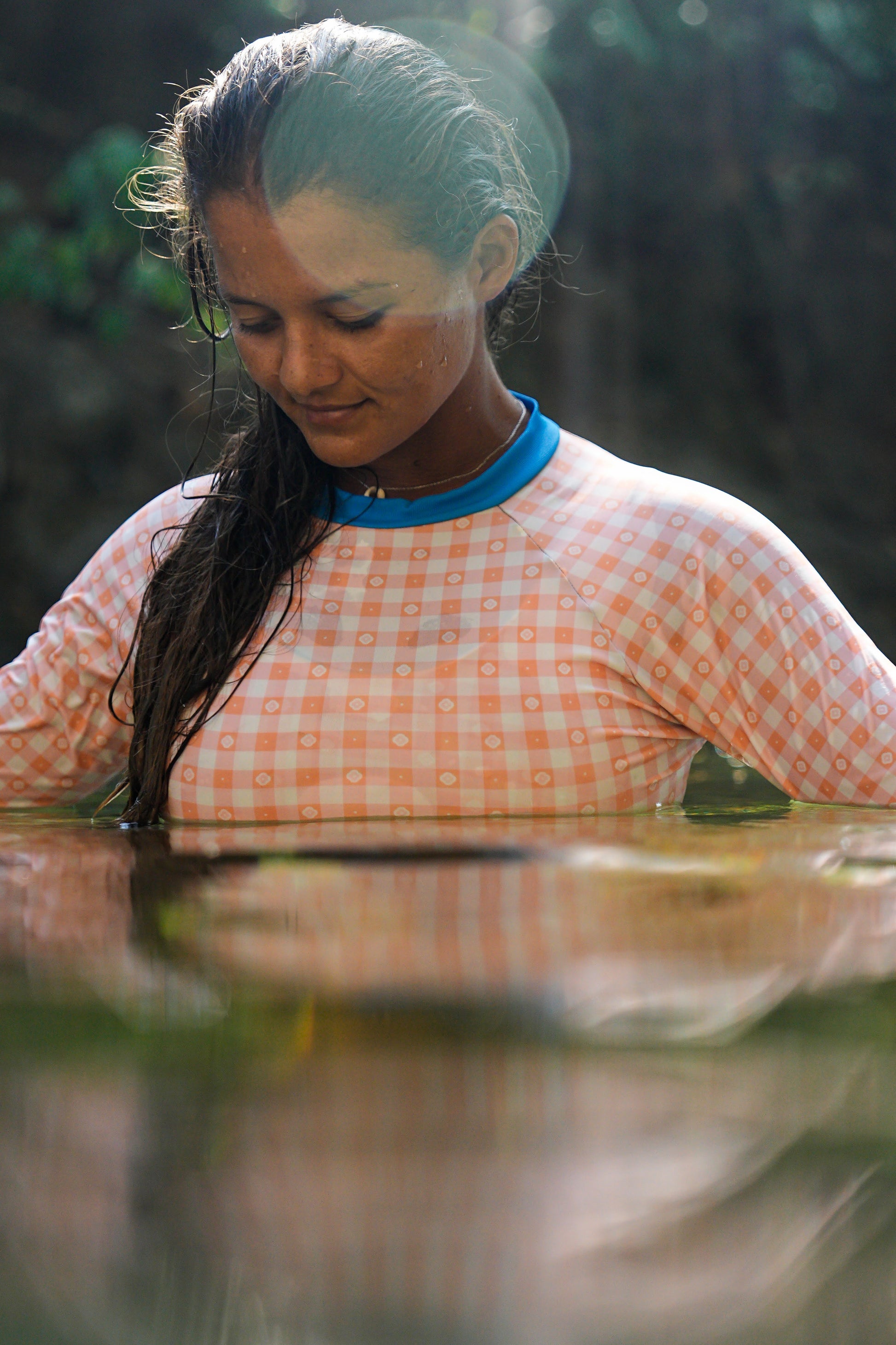 Eco Fabrics are made from 100% post consumer plastics; hand wash, air dry, rinse with fresh water after use to increase longevity of garment.
